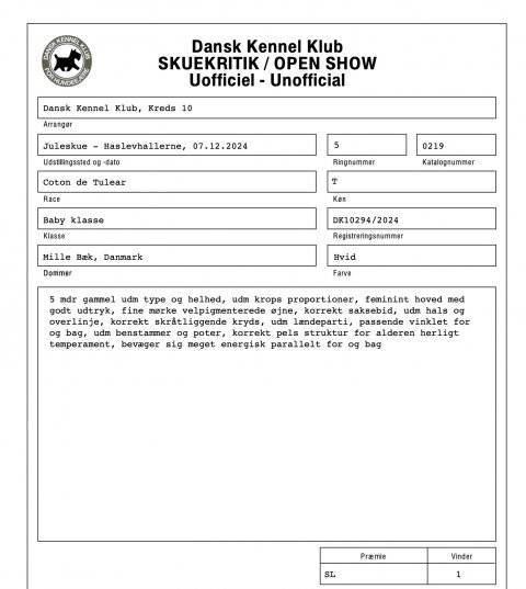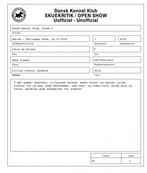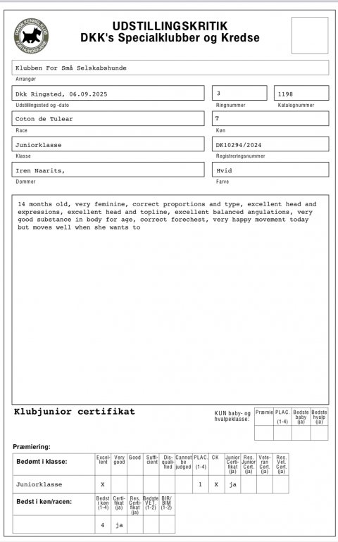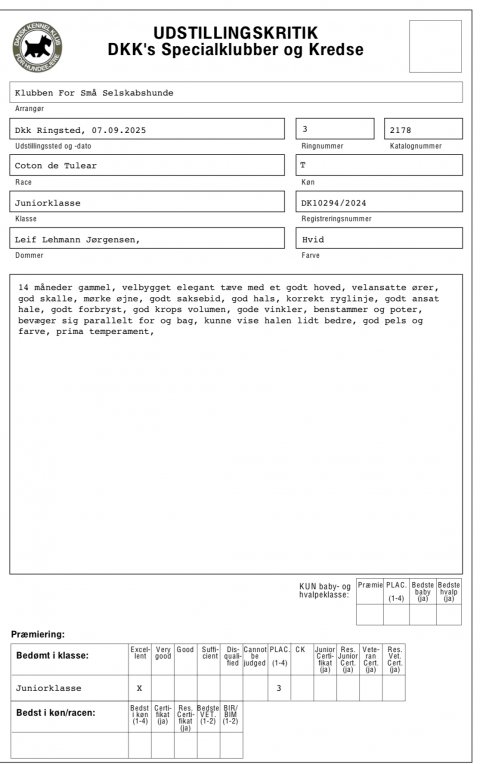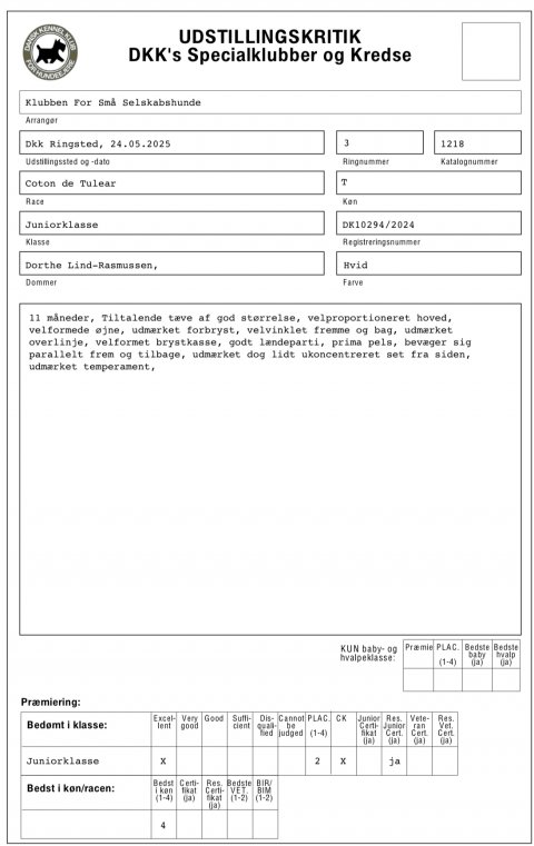 Evig fik placeriing SL og bedste baby tæve samt BIM baby